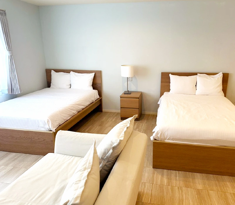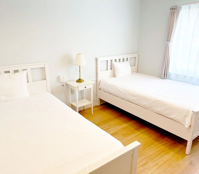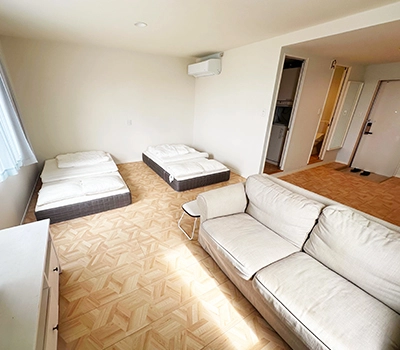 客室40平米のフローリング洋室にファミリー向けのローベッド