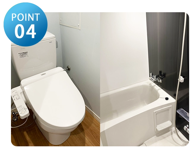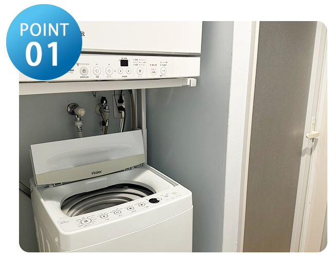 客室24平米のフローリング洋室にバス・トイレ別/洗濯機/衣類乾燥機完備